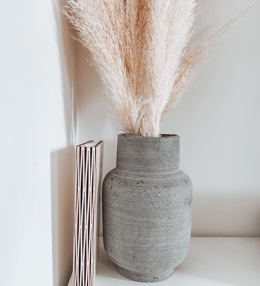 The Ava vase features a soft, matte gray finish that seamlessly complements a variety of interior design styles, from modern and Scandinavian to rustic farmhouse and bohemian. Its neutral tone allows it to blend effortlessly with any color palette, while its gently rounded form adds a touch of sophistication and calm. The defining feature of this vase is its curved handle—a tasteful detail that gives it a unique silhouette and an artisanal touch.